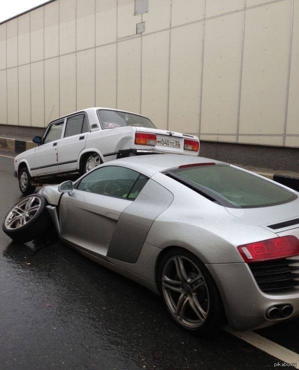 Скорее всего виновата ауди, но если нет, то квартира, почки, всё будет продано. Я кстати такую-же вдребезги на черкизовском мосту видел, ещё лет 7 назад на тверской коцнули у отеля, у них процент аварий наверно 150-200% =)