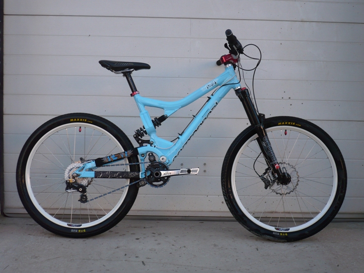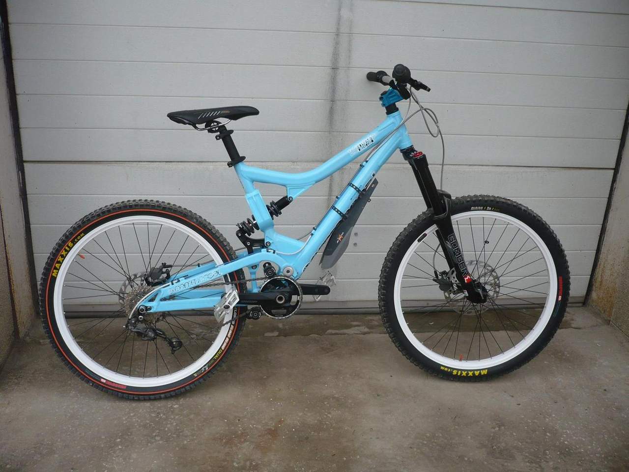 Летом 2010 года, случайно увидел на ебай раму Commencal Supreme miniDH, до этого только и знал, что за коменду Commencal/Animal гоняют семейка Афертонов, да ещё гонял Цедрик Грасия. Увидив сию раму просто влюбился, голубенькая, ходу под 160мм, достаточно, что бы скатиться с наших косогоров и вполне не много, что бы раскисать на плоскости. Аморт (Marzocchi Roco Coil R), рулевая, успокоитель, телескопический подсидел и сменные дропаут под 12мм ось шли в комплекте.