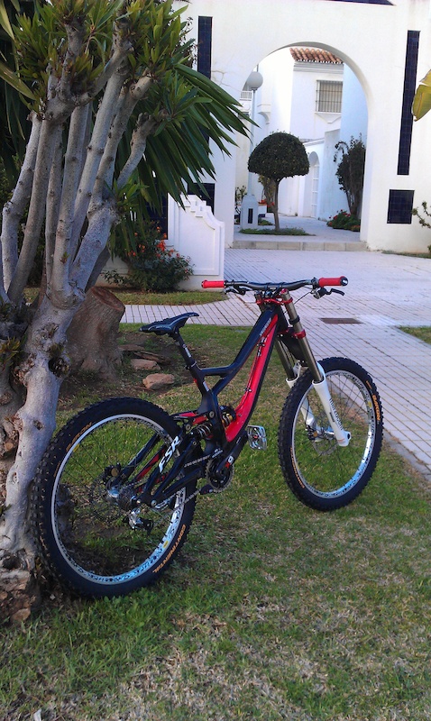 Это Antidote LifeLine DH - очень красивая карбоновая рама маленькой польской компании. От его покупки в своё время меня остановил лишь идиотский "уникальный" стандарт успока.