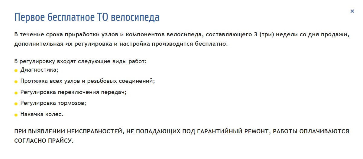 Да тех.обслуживание (любое) могу сделать и сам,вопрос о том,стоит ли делать его перед первым выездом, и надо ли,допустим, проверять наличие смазки в каретке и ступицах. Понятно,что через месяц катания надо будет сделать полную протяжку,включая спицы.